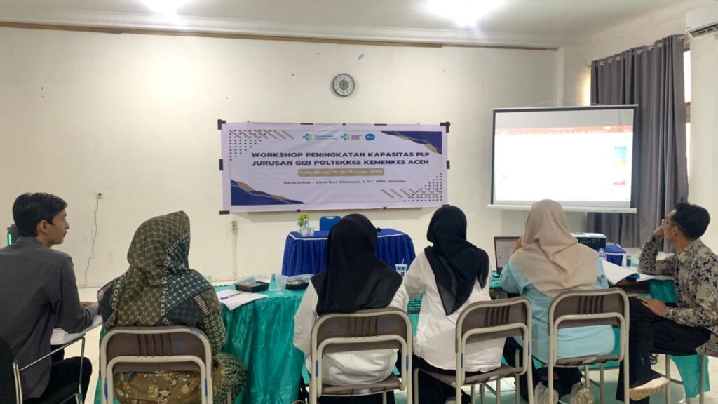 Aceh Besar, 15 Oktober 2025 bertempat di Ruang Air Prodi Sarjana Terapan Gizi dan Dietetika Jurusan Gizi Poltekkes Kemenkes Aceh dilaksanakan Workshop Peningkatan Kompetensi Pranata Laboratorium Pendidikan (PLP) dilaksanakan pada tanggal 15 s.d 16 Oktober 2025 diikuti petugas Pranata Laboratorium Pendidikan (PLP) dan Clinical Instructur pada Jurusan Gizi Poltekkes Kemenkes Aceh.